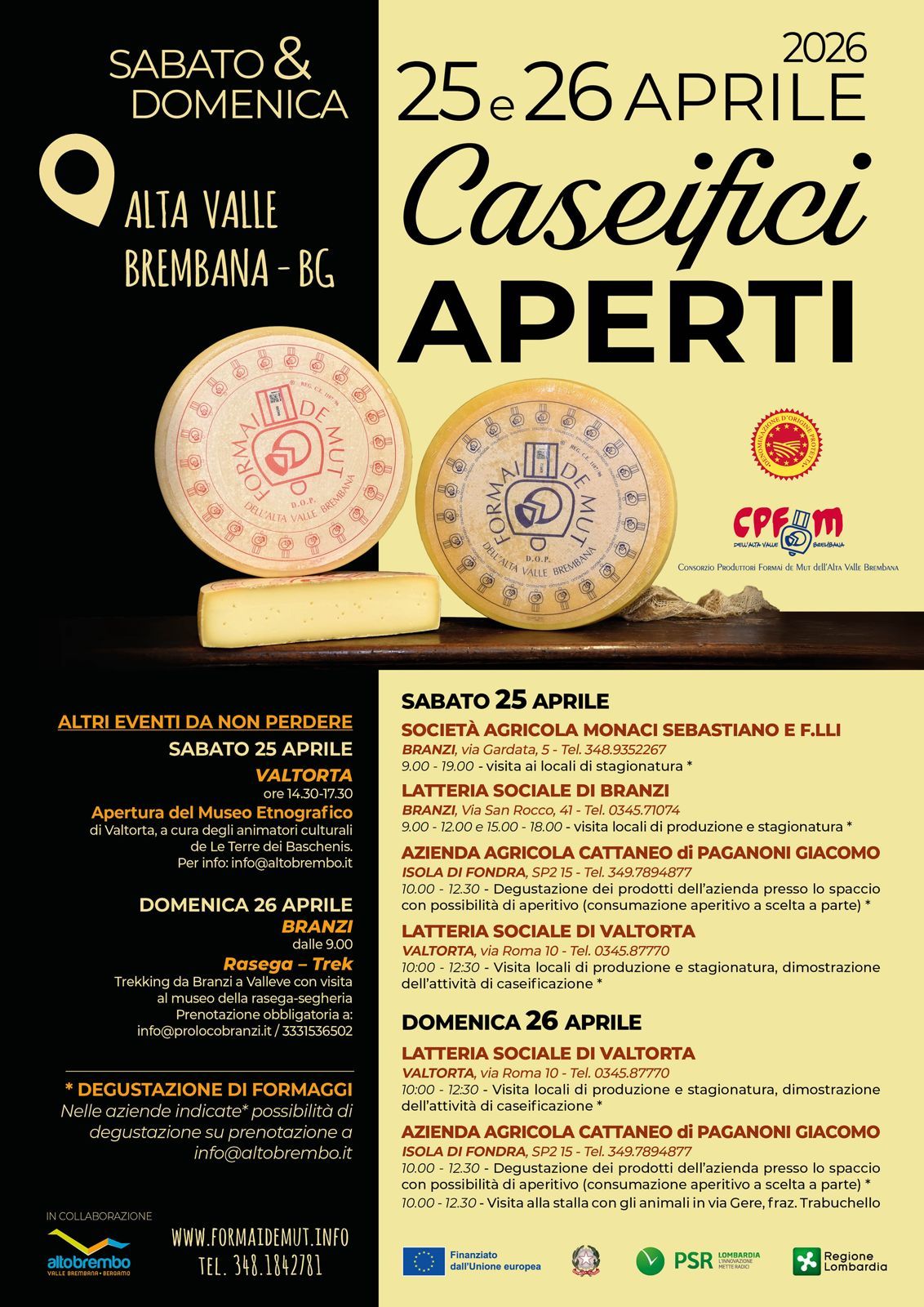 Caseifici Aperti – Alta Valle Brembana – 25 e 26 aprile 2026