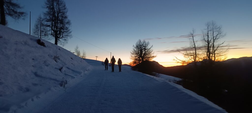 Un modo unico per esplorare le montagne in inverno, dotati di ciaspole, frontalino, bastoncini e abbigliamento adatto, immersi nella magia dell’inverno e avvolti nel silenzio della natura.