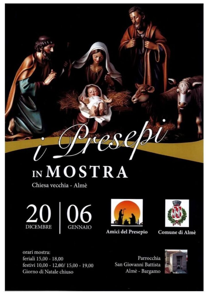 E’ stata inaugurata sabato 20 dicembre, nella chiesa vecchia di Almè, la Mostra dei Presepi, giunta alla decima edizione, a cura degli Amici del Presepio e patrocinata dal Comune di Almè. Anche quest’anno la mostra è ricca di bellissimi presepi, opere d’arte originali e uniche così come il Presepio presente nella chiesa parrocchiale.