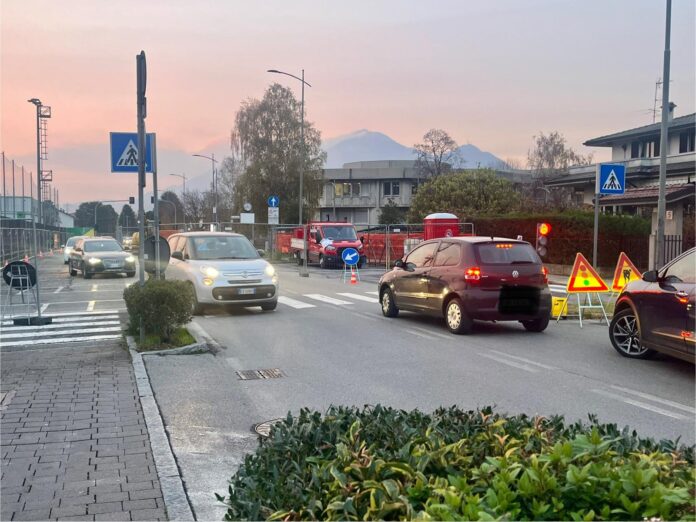 Almè, aperti i nuovi parcheggi in via Olimpia. Senso alternato con semaforo per il cantiere