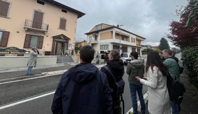 Ad attenderla fotografi e giornalisti e la polizia locale di Almè-Villa d’Almè, per regolare il traffico di via Brughiera, una laterale della provinciale della Valle Brembana.