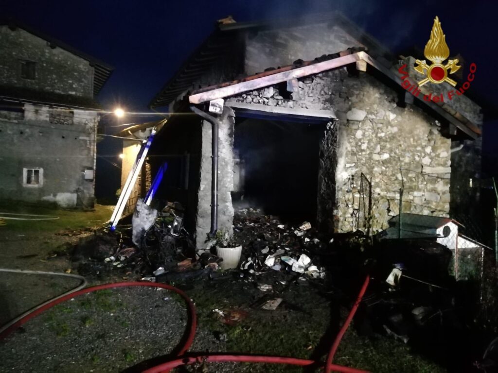 Sul posto i vigili del fuoco con le autobotti e i carabinieri di Piazza Brembana. Il fuoco ha distrutto parte della copertura del magazzino, ma anche alcuni elettrodomestici e suppellettili presenti nella struttura.