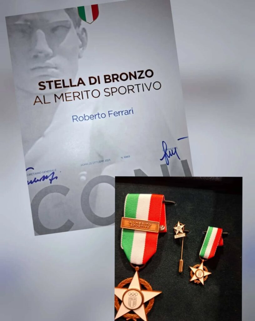 Da ormai 30 anni guida l’Atletica Valle Brembana con una competenza e una passione uniche. Roberto Ferrari, 64 anni, di Zogno, ha ricevuto dal Coni la “Stella di bronzo al merito sportivo” per il 2023, come “riconoscenza delle benemerenze acquisite nella tua attività dirigenziale”, spiegava il presidente nazionale del Coni, Giovanni Malagò nella lettera di annuncio lo scorso gennaio. A premiarlo, venerdì 7 novembre, alla Cittadella dello sport di Bergamo, la delegata Coni, per Bergamo, Lara Magoni e il fiduciario Silvano Gherardi. “Condivido questo premio con la mia famiglia e tutta la famiglia dell’Atletica Valle Brembana”, dice Roberto.