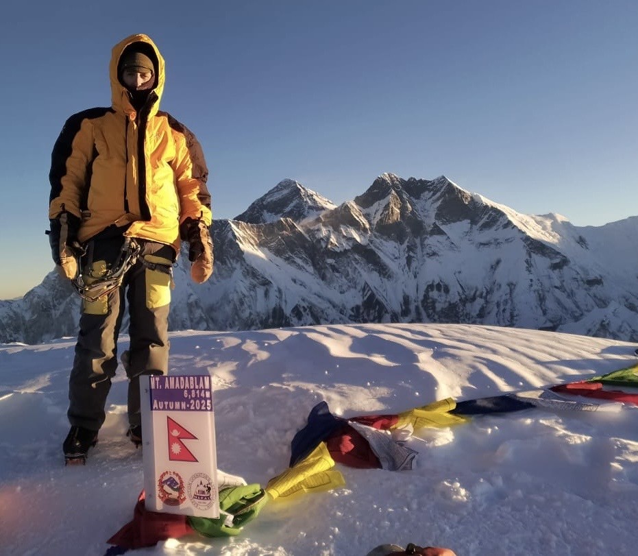 «Ho sempre avuto la passione dell’alpinismo – continua Simone – e del trekking, ma non molto di più. Finché nell’estate 2024 mi sono deciso e, in Nepal, ho scalato l’Island Peak (6.165 metri) sull’Himalaya». «Il fisico ha reagito bene alla salita – continua il maestro di sci – e così la scorsa estate sono di nuovo partito». Così all’alba del 24 ottobre, Midali ha conquistato anche l’Ama Dablam, guidato da uno sherpa.