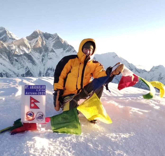 «Ho sempre avuto la passione dell’alpinismo – continua Simone – e del trekking, ma non molto di più. Finché nell’estate 2024 mi sono deciso e, in Nepal, ho scalato l’Island Peak (6.165 metri) sull’Himalaya». «Il fisico ha reagito bene alla salita – continua il maestro di sci – e così la scorsa estate sono di nuovo partito». Così all’alba del 24 ottobre, Midali ha conquistato anche l’Ama Dablam, guidato da uno sherpa.