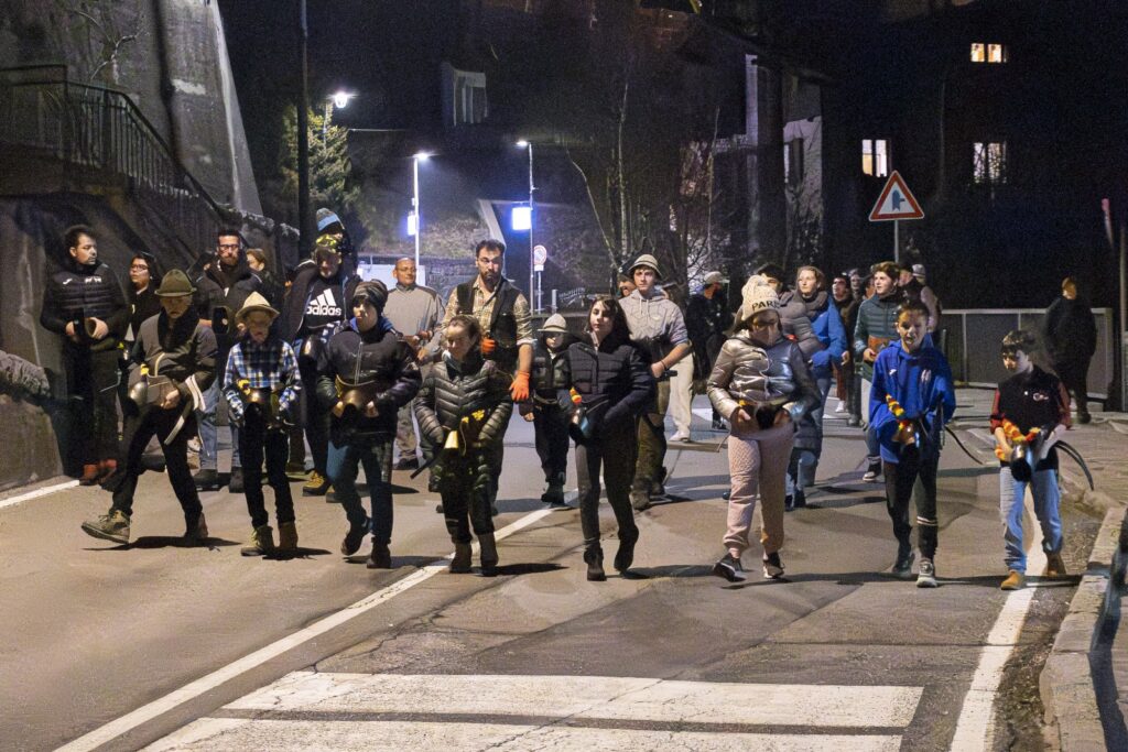 Si sono ritrovati sul sagrato della chiesa arcipresbiterale. Qui, dopo il saluto al parroco don Sergio Carrara, il corteo rumorosissimo ha raggiunto il bivio per la frazione Mulini, per fare poi rientro alla chiesa. Passando davanti alla casa di Piero Zani un omaggio a chi, per anni, ha portato avanti questa antichissima tradizione. Pochi minuti in cui anche Piero e la moglie Liliana si sono uniti al gruppo.