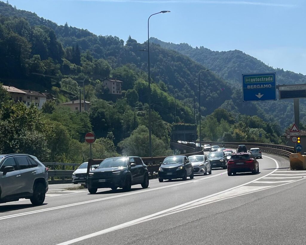 Ferragosto 2025, la coda in uscita dalla variante di San Pellegrino (Copyright Valbrembanaweb)