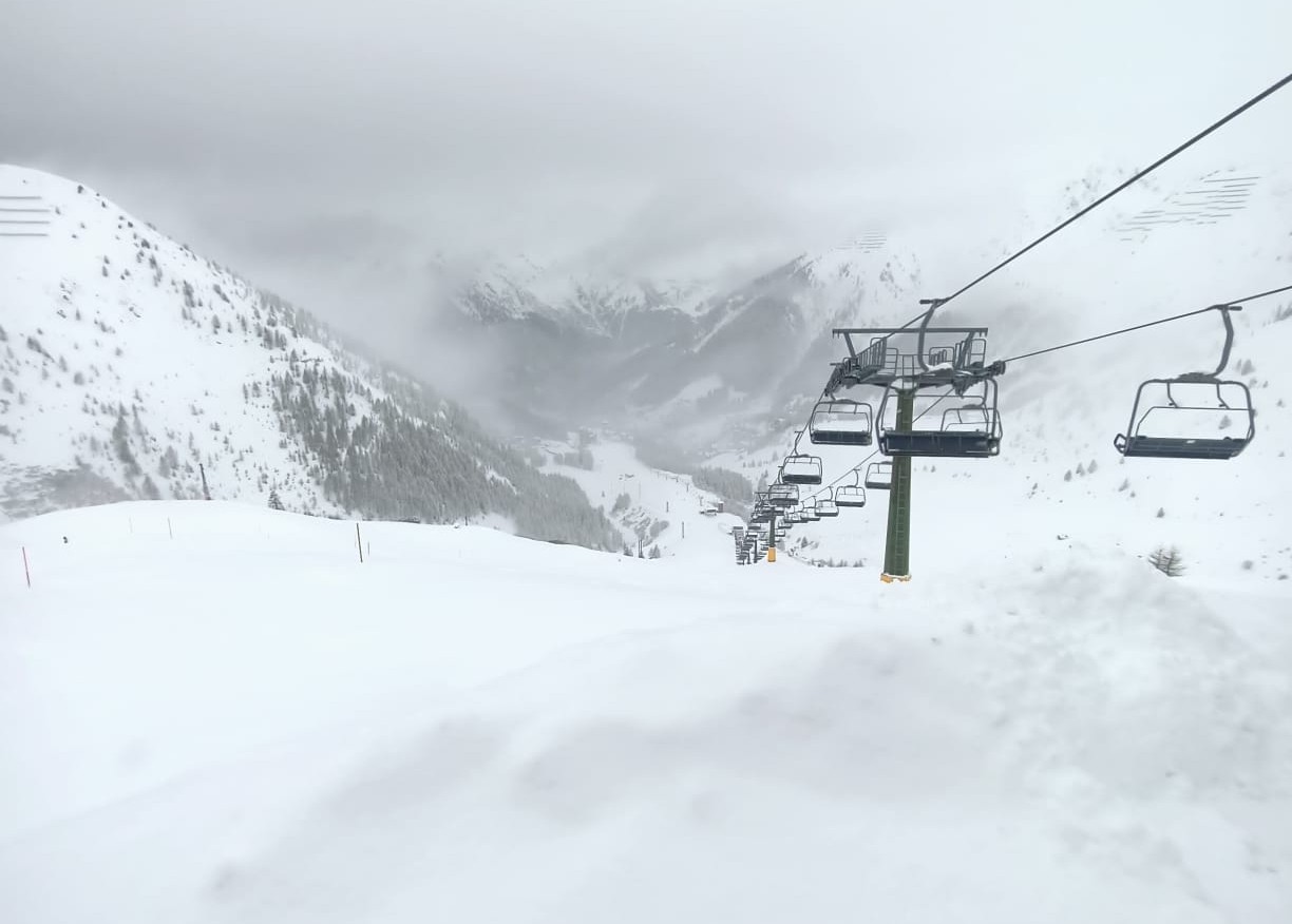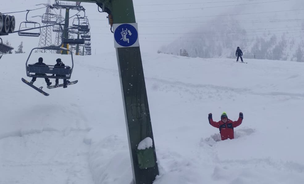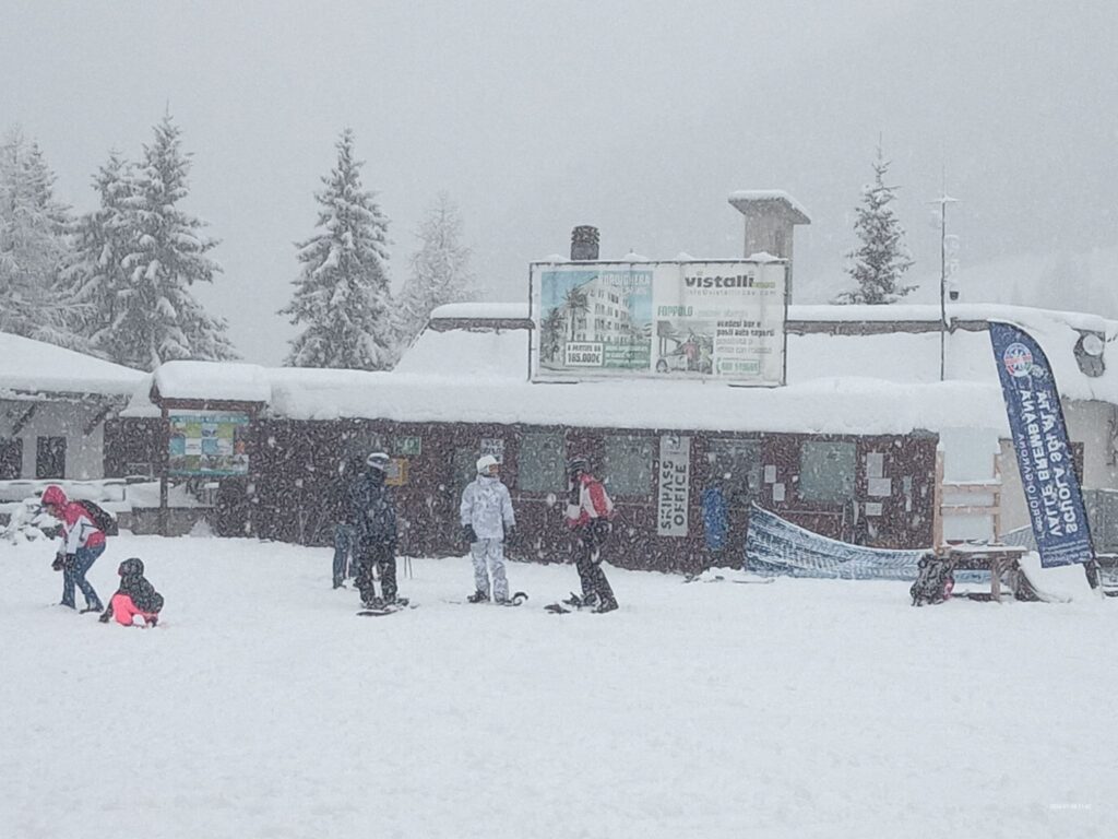 Foppolo sotto una nuova nevicata, fiocchi anche a mille metri