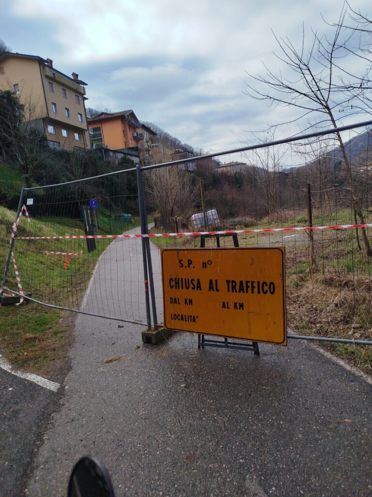 Frana sulla pista ciclabile, chiuso un tratto tra Sedrina e Villa d’Almè