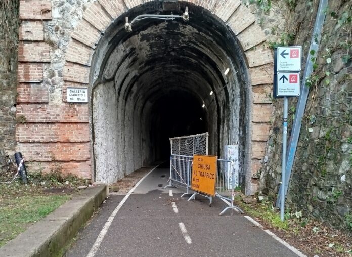 La pista ciclopedonale della Valle Brembana è interrotta in un tratto compreso tra Botta di Sedrina e la stazione di Clanezzo, in territorio di Villa d’Almè, per una frana verificatasi nei giorni scorsi dopo una pioggia intensa, all’altezza della località Campana.