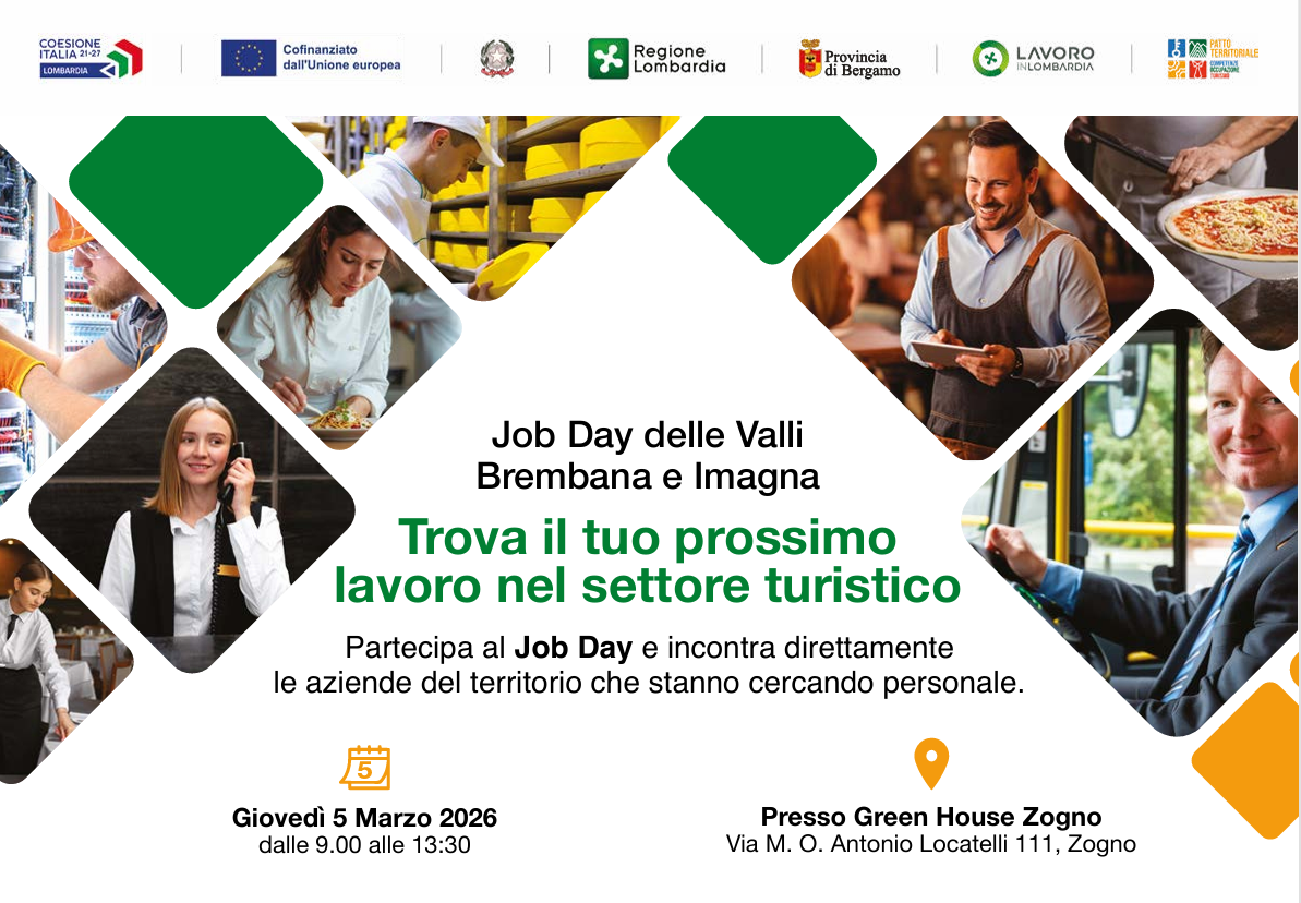 Il lavoro chiama, le Valli rispondono. Giovedì 5 marzo 2026, la Green House di Zogno (via Locatelli 111) ospiterà il prossimo Job day organizzato dai Centri per l’impiego della provincia di Bergamo. Un appuntamento per chi è alla ricerca di un’occupazione o desidera cambiare percorso professionale, con la possibilità di incontrare direttamente i recruiter e sostenere colloqui sul posto. L’evento si svolgerà dalle 9 alle 13,30.