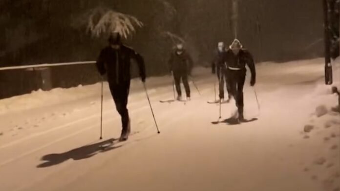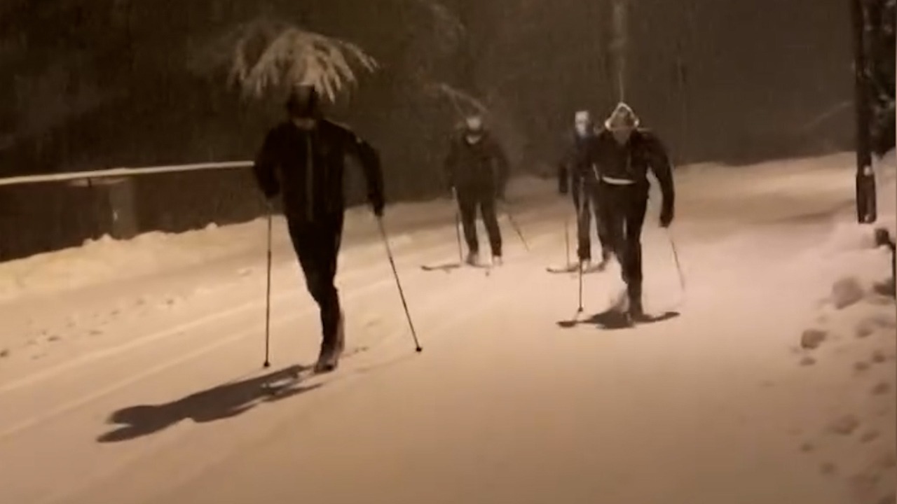 E’ tornato a nevicare lunedì 24 novembre, in serata, anche in alta Valle Brembana. Fiocchi oltre i 600 metri, imbiancati diversi paesi dell’alto Brembo. E a Carona – in attesa che riaprono gli impianti e le piste in Val Carisole – qualcuno ne ha approfittato per divertirsi, prima del passaggio degli spazzaneve, per improvvisare una pista da sci di fondo proprio sulla strada che attraversa il centro paese.
