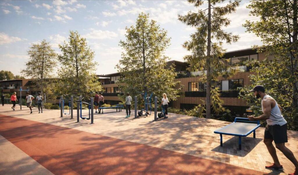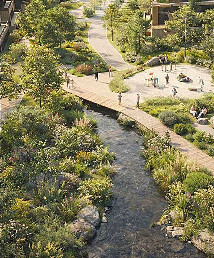Prevista, nella convenzione iniziale, anche un ponticello di collegamento tra il nuovo villaggio e il parco del Monte Taddeo.