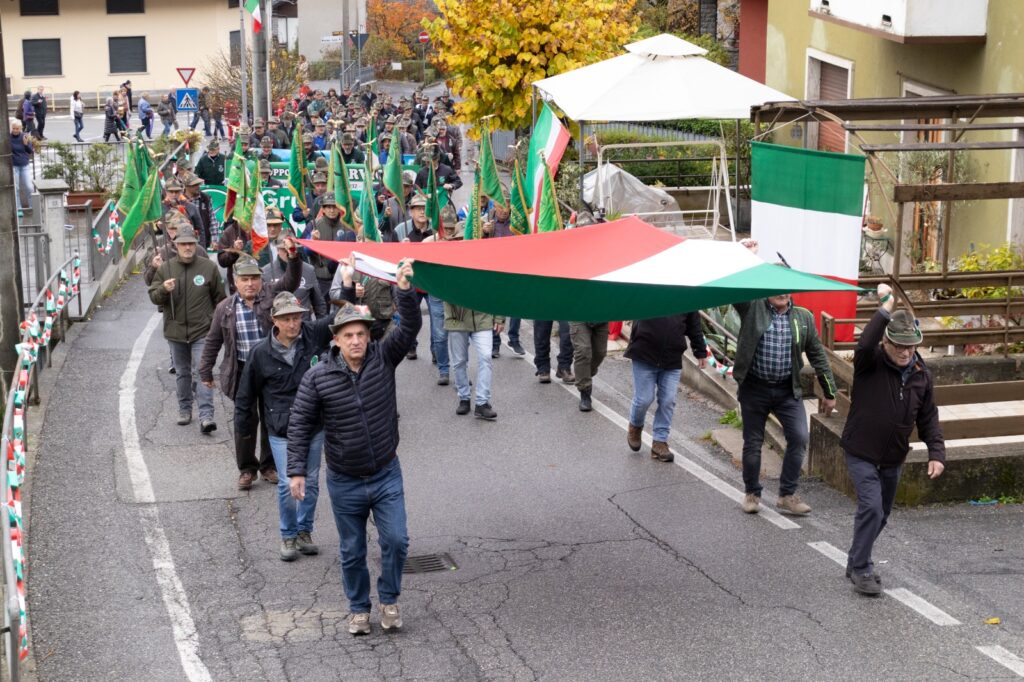 Il corteo ha animato un paese parato a festa grazie all’impegno di alpini e volontari, prima della corale cerimonia sulla scalinata di via Belotti, al culmine della quale sono posti il restaurato Monumento disegnato dall’Angelini e la Casa Natale degli eroici Fratelli Attilio, Santino, Giovanni Battista “Giannino” e Natale “Nino” Calvi. Grazie alla regia dei coordinatori dell’Alta Valle Hans Quarteroni e Roberto Boffelli, nonché della voce alpina Francesco Brighenti, si sono susseguiti discorsi e riconoscimenti. Dopo il sindaco Leone Gervasoni, hanno parlato fra gli altri anche Alex Bonetti, capogruppo a Piazza Brembana, Valeriano Bianchi, Paolo Franco (“il Tricolore è la più alta carica dello Stato, gli Alpini da sempre la esaltano con onore e solidarietà”).