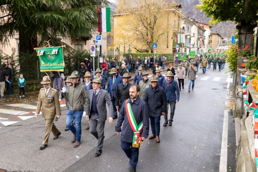 Oltre la Goggia si sono radunate le Penne Nere oggi distribuite in diciotto Gruppi su venti Comuni (Piazzolo aggregato a Olmo al Brembo e Valleve aggregato a Branzi), ma anche Alfieri e componenti di decine di gruppi, da Savona alla Valtellina, dal Milanese alle Valli Bergamasche. In prima fila, dietro all’inossidabile Fanfara Alpina di Scanzorosciate, ai gagliardetti di tante associazioni di solidarietà ed ai gonfaloni dei Comuni, c’erano lo striscione dei Campi Scuola Alpini, il vicecomandante delle Truppe Alpine, generale Alberto Vezzoli (originario di Valnegra), il presidente sezionale Giorgio Sonzogni con numerosi consiglieri, l’europarlamentare Lara Magoni, l’assessore regionale Paolo Franco con i consiglieri Jonathan Lobati, Alberto Mazzoleni, Michele Schiavi e Pietro Maconi, il sindaco di Piazza Brembana Leone Gervasoni con tutti i colleghi o rappresentanti dell’Alta Val Brembana fra cui il presidente della Comunità Montana Valeriano Bianchi, il comandante della locale stazione Carabinieri, Giacomo Sarais.