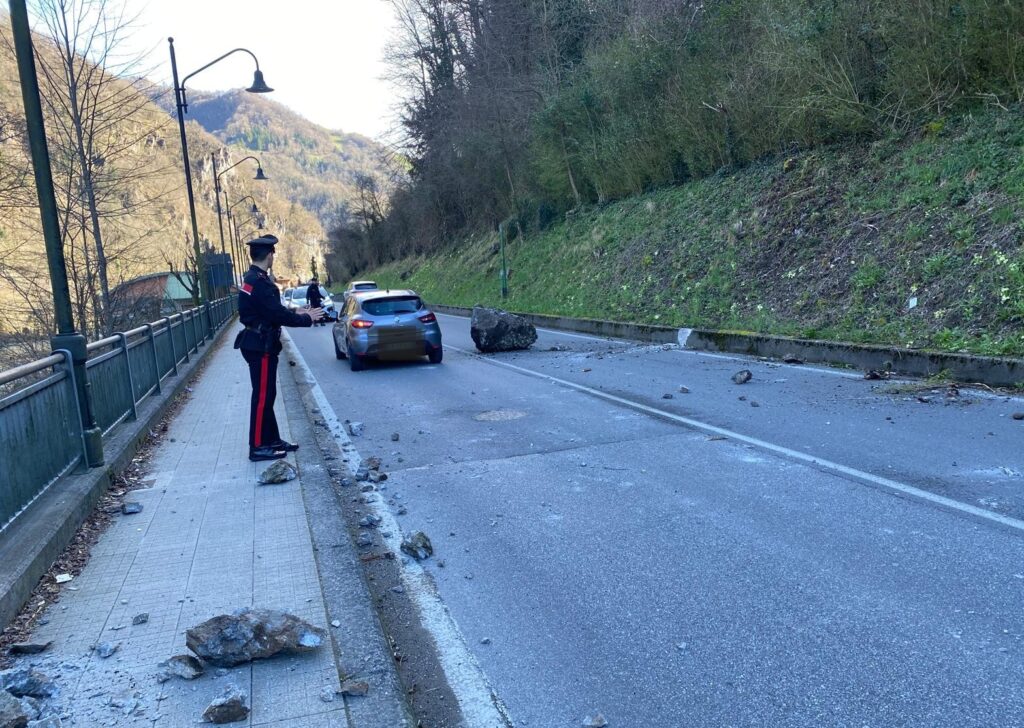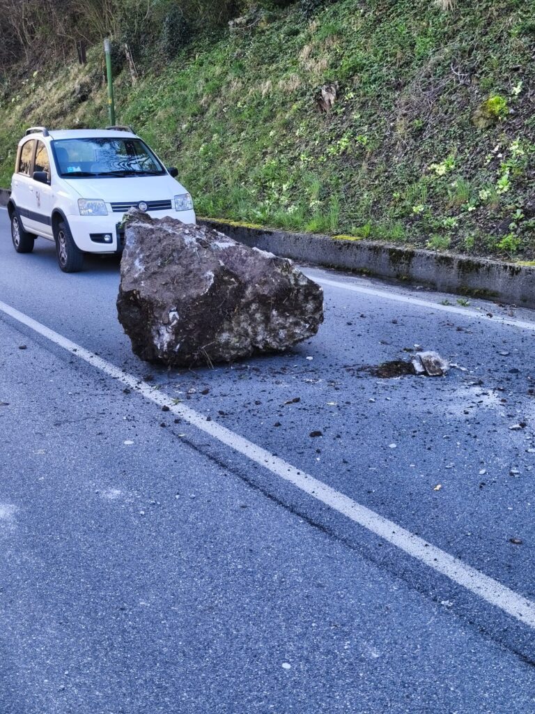 Sul posto tecnici comunali e carabinieri per regolare il traffico a senso unico alternato. LA STRADA RESTA CHIUSA fino alla verifica delle condizioni del versante. Stop anche per pedoni e ciclisti.