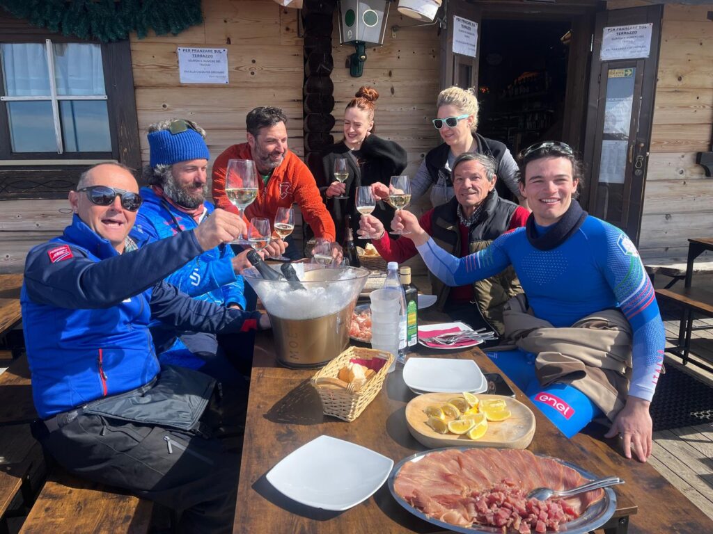 A Carisole è stata festa con brindisi, insieme agli amici, al rifugio Mirtillo. In onore anche di Michela Moioli, campionessa – proprio il 28 marzo – di snowboard cross.