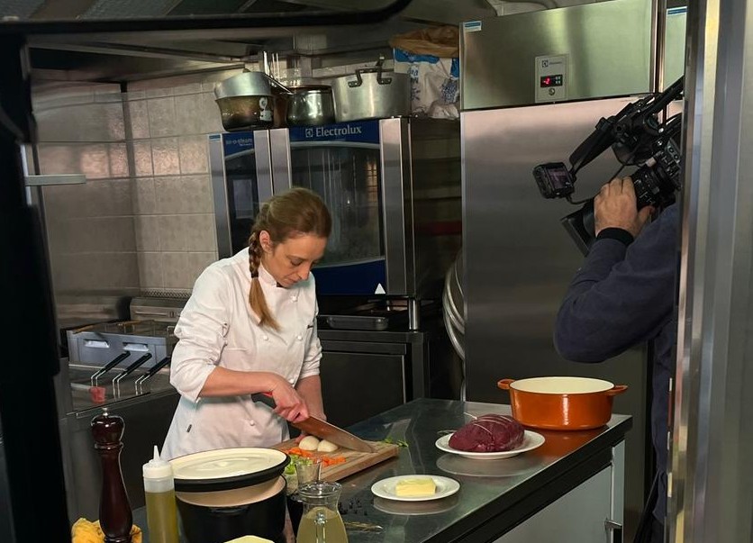 Durante la puntata, ci si ferma anche al ristorante La Taverna Rottigni di Bagnella Serina, dove vengono raccontati e preparati piatti realizzati con la carne grassfed. A cucinarli è la chef Rottigni Michela, compagna dell’allevatore, che con passione e competenza porta in tavola ricette che esaltano la qualità della carne e il legame con il territorio. Tra queste, spicca la Polenta Cünsada, una ricetta tradizionale della Valle Brembana che unisce polenta rustica, panna e burro di malga, raccontando la montagna attraverso il gusto.
