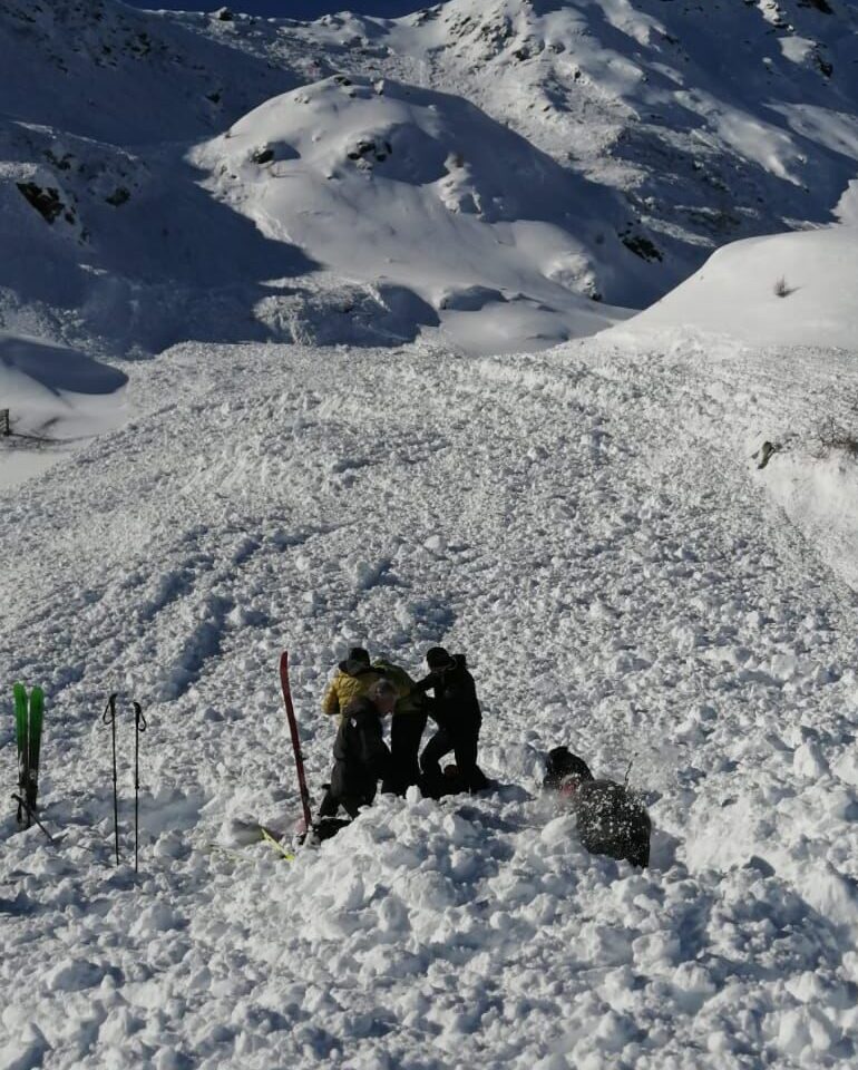 Il distacco è avvenuto intorno alle 11,30: due scialpinisti, di Sorisole, S. I. di 65 e M. B. 72 anni, sono stati travolti da una valanga staccatasi spontaneamente. Un terzo scialpinista era rimasto coinvolto ma non sommerso. Un altro gruppo di quattro scialpinisti ha visto la valanga ed è riuscito – grazie ad Artva, pala e sonda – a scavare e salvare i due travolti.