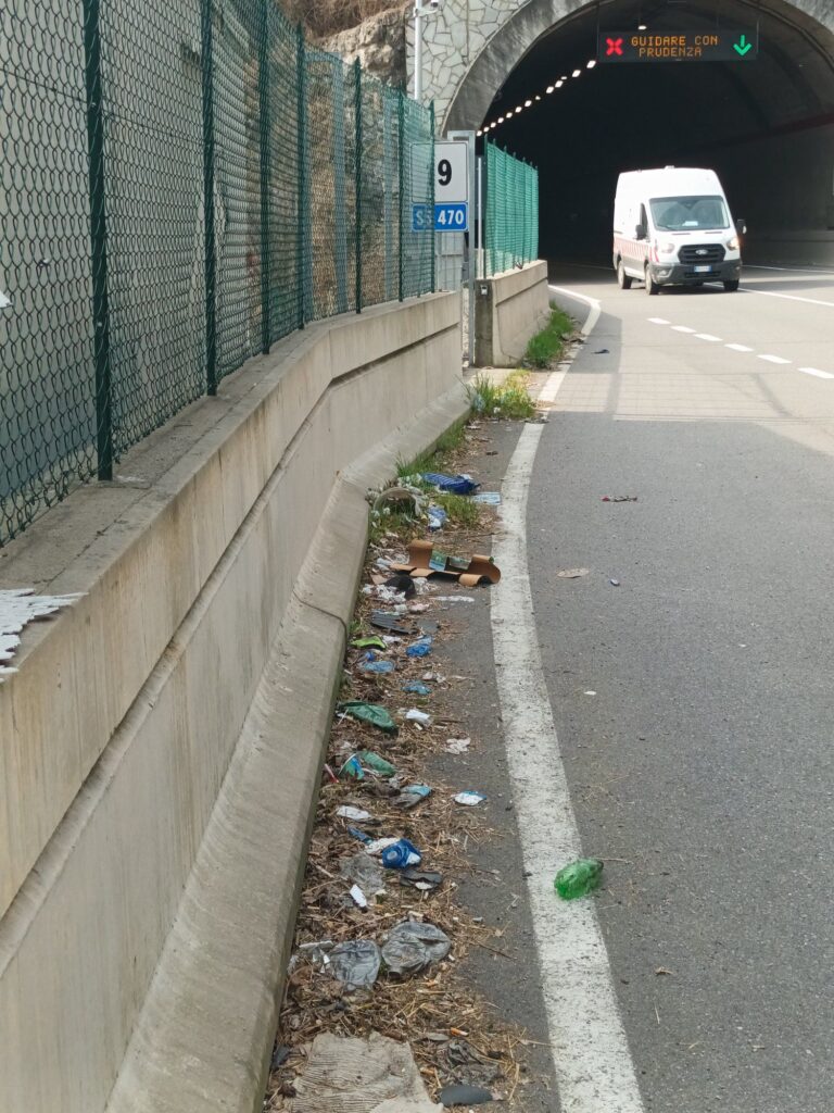 Ma basta fermarsi, come ha fatto un automobilista della valle, per rendersi conto del degrado che circonda i due chilometri di variante in galleria a Zogno, competenza Anas: rifiuti a lato strada e poco oltre, lattine, sacchetti di plastica, vetro, materiale vario gettato nelle scarpate in mezzo a prato e alberi.