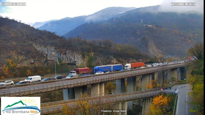 Viadotto di Sedrina già con lunghissime code di auto ferme prima dell’alba, nella giornata del 20 novembre. A segnalarlo alcuni automobilisti e anche dalle nostre webcam arriva la conferma: veicoli in coda da oltre la metà del viadotto. Alle 8,20 situazione ancora peggiorata con la coda in discesa che occupava praticamente tutto il viadotto.