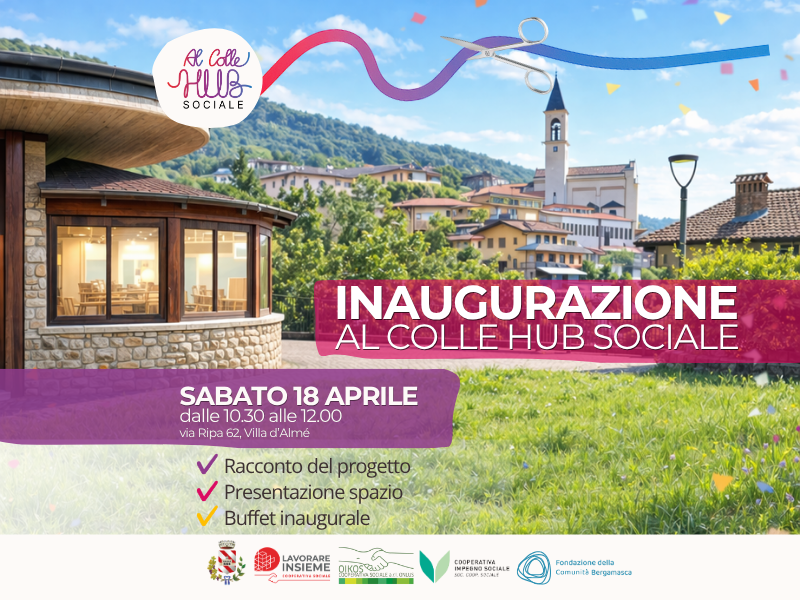 Sabato 18 aprile, dalle 10 alle 12.30, si terrà l’inaugurazione di Al Colle – Hub Sociale, in via Ripa 62 a Villa d’Almè: aperto già dal 14 marzo rappresenta un nuovo luogo pensato per accogliere, mettere in relazione e generare opportunità all’interno della comunità.