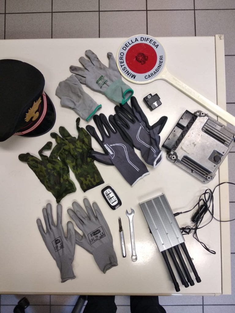 I militari hanno rinvenuto e sequestrato anche diversi arnesi da scasso, guanti, una presa da ’16 poli’ atta a ricodificare le chiavi e l’accensione delle vetture, centraline, una chiave d’accensione neutra Chrysler, alcuni attrezzi atti a forzare le serrature delle vetture ed un disturbatore di frequenza utilizzato per inibire le comunicazioni radio.