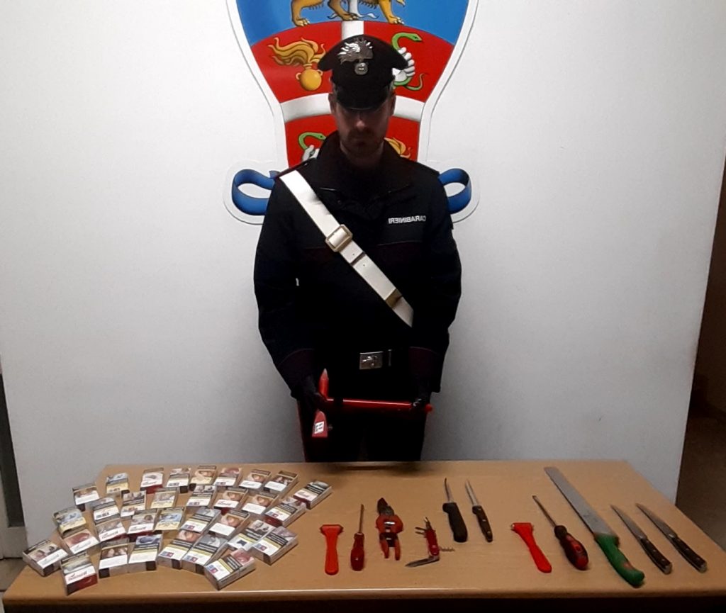 Nel corso degli accertamenti emergeva che i rapinatori per infrangere le vetrate avevano utilizzato dei “martelletti d’emergenza” in dotazione alle Ferrovie dello Stato, rinvenuti a seguito di una perquisizione personale, oltre ad una serie nutrita di strumenti utilizzati per effrazioni, coltelli, nonché la refurtiva (circa una quarantina di pacchetti di sigarette di varie marche) che è stata restituita al proprietario del locale.