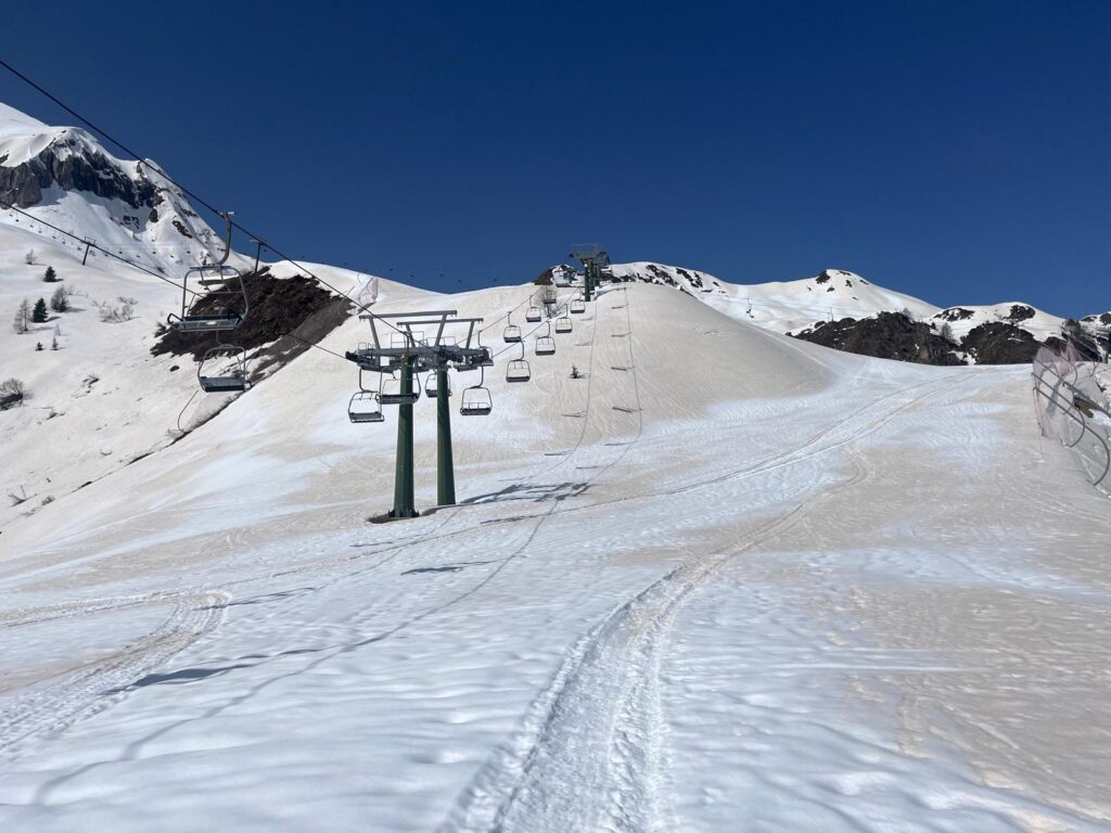 Impianti di risalita chiusi, ma ancora tanta neve in quota, fino a due metri in alta montagna. E, ancora di più in questi giorni, si può notare il fenomeno della neve “rosa”, causato dalla sabbia del deserto del Sahara che, a inizio aprile, i venti di Scirocco hanno portato fino sulle Alpi e le Prealpi.