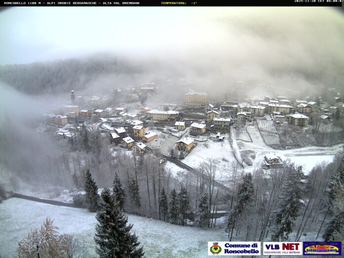 Spruzzata di neve nella notte tra mercoledì 19 e giovedì 20 novembre in alta Valle Brembana, dagli 800 metri in su. Imbiancati diversi paesi, da Mezzoldo a Carona, da Roncobello a Cusio. Fiocchi anche sulle piste da sci di Foppolo, Valtorta e Piazzatorre dove si spara anche neve grazie ai cannoni. La situazione neve può essere monitorata tramite le nostre webcam.
