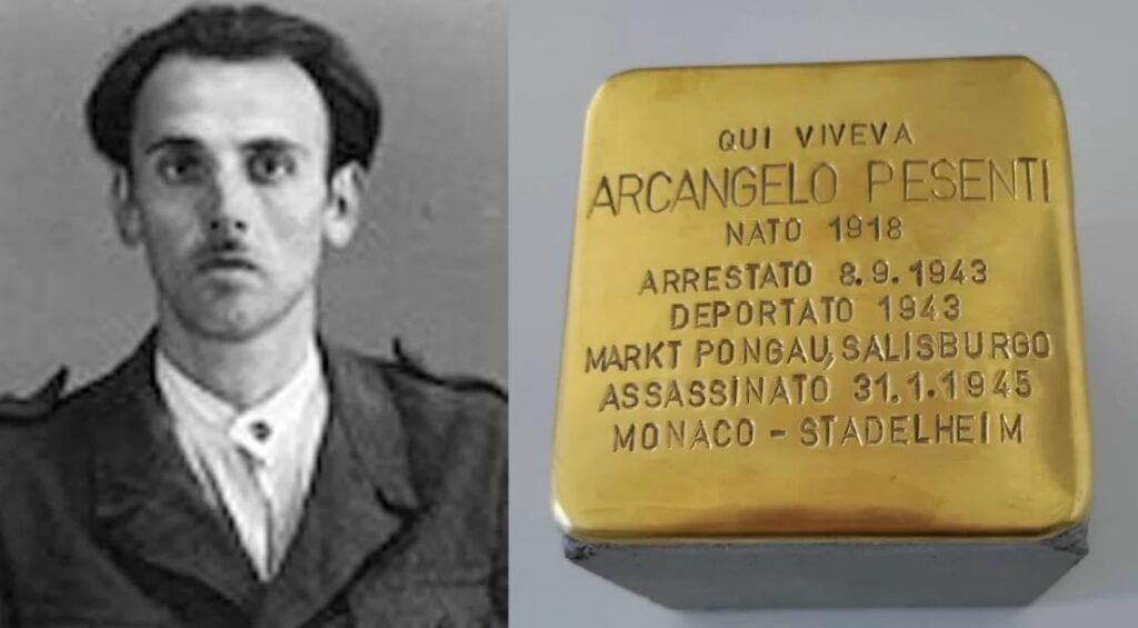 “Il caporal maggiore artigliere Arcangelo Pesenti Compagnoni, di Sottochiesa – spiegano dall’Anipi – fu catturato dai tedeschi l’8 settembre 1943 in Grecia, deportato in Germania, quindi mandato a lavorare per le ferrovie tedesche a Salisburgo. Il 16 ottobre 1944, dopo il bombardamento della città, venne sorpreso con un prigioniero russo mentre tentava di appropriarsi di 200 sigarette. Il russo venne impiccato lo stesso giorno, Pesenti fu processato, condannato a morte e decapitato tramite ghigliottina il 31 gennaio 1945 a Monaco-Stadelheim. È sepolto a Monaco di Baviera nel Cimitero Militare Italiano d’onore”.