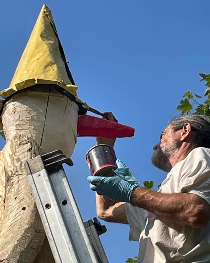 Un maxi Pinocchio alto cinque metri, tutto in legno…. come deve essere il burattino. E’ quello realizzato dallo scultore originario di Taleggio Pietro Arnoldi, 67 anni, e installato (sarà permanente) in località Mazzola, sulla mulattiera che scende dalla chiesa di Peghera di Taleggio al ponte dei Senesi, seguendo la strada carrabile. È fisso, alto cinque metri e con lui ci sono altre grandi figure (una piovra, un bruco, alcune donne). Qui, infatti, sta per essere allestito una sorta di museo a cielo aperto delle sculture di Arnoldi che verrà arricchito di anno in anno.