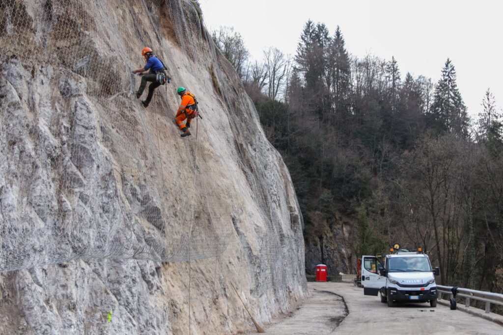 Ancora pochi giorni di lavori e poi – potrebbe essere già da lunedì 13 marzo – il tratto di strada provinciale della Valle Serina chiuso da circa due settimane tornerà di nuovo transitabile. La strada è chiusa per i lavori di ampliamento della carreggiata, circa 250 metri, al bivio di Costa Serina a salire. Dopo la costruzione dei muri a valle, si è provveduto ai lavori di sbancamento della roccia, in particolare all’altezza di due curvoni. In questi giorni i rocciatori stanno invece posando le reti di protezione paramassi.
