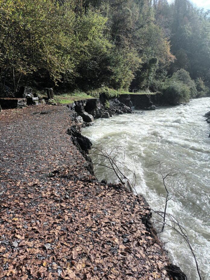 L’erosione del torrente ha anche distrutto buona parte dell’area sosta attrezzata sempre poche decine di metri dopo il ponte dell’Enna.