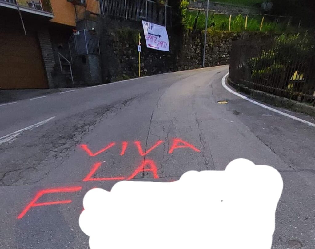 “Saranno stati dei ragazzi, una cosa goliardica. Chi non lo ha fatto in gioventù? Ci sono cose assai più disdicevoli nel mondo”. “Ma non si imbrattano strade e muri pubblici”. Sono solo alcuni delle centinaia di commenti che da sabato 3 giugno vengono postati sul web in merito a una scritta apparsa sulla strada comunale che da Zogno porta a Stabello: “Viva la f…”. Poco oltre si trova appeso uno striscione, evidentemente relativo a due novelli sposi, con la scritta “Yuri”, e una freccia che indica la direzione a monte, e “Spritz party”, con la freccia a valle.