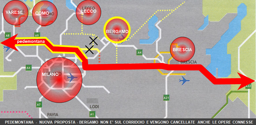 Le conseguenze, secondo Sonzogni, riguardano l’intera provincia e non solo i 13 Comuni coinvolti direttamente. Tutti i 243 Comuni bergamaschi rischiano un progressivo allontanamento dai principali assi infrastrutturali.