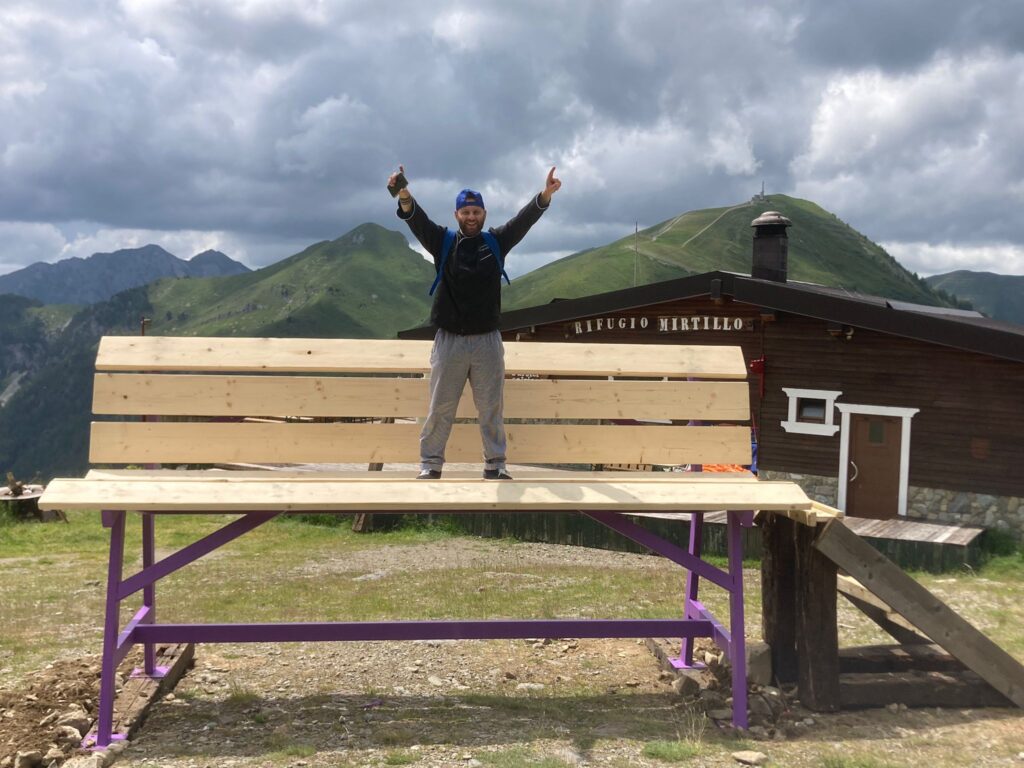 “La prima panchina gigante a 2.000 metri. Vi aspettiamo per toccare il cielo con un dito”. Così recita lo slogan del rifugio Mirtillo, il bar-ristoro posto in Val Carisole della famiglia Midali, per annunciare l’ennesima panchina gigante realizzata sulle Orobie (la prima in Val Brembana è stata quella di Santa Croce, frazione di San Pellgrino).