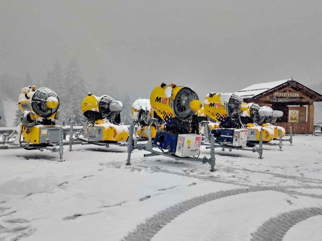 Nei giorni scorsi sono stati posizionati i 12 cannoni e 5 aste per l’innevamento programmato che risulta autonomo da quello di Brembo Super Ski, si misurano circa 20cm nella zone del rifugio Montebello e 10cm più in basso.