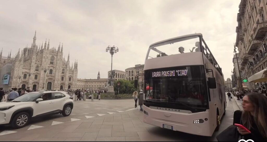 San Pellegrino Terme e la Valle Brembana “in viaggio” con il nuovo singolo “Ciao/Chao” di Laura Pausini. La cantante di Faenza ha presentato il brano martedì 24 settembre, a Milano, a bordo di un pullman doppio della Zani Viaggi di San Pellegrino. Un pullman appositamente serigrafato per l’evento, ma di proprietà dello storico gruppo nato a Dossena, oggi guidato del direttore generale Claudio Astori e dall’amministratrice Marilena Zani.