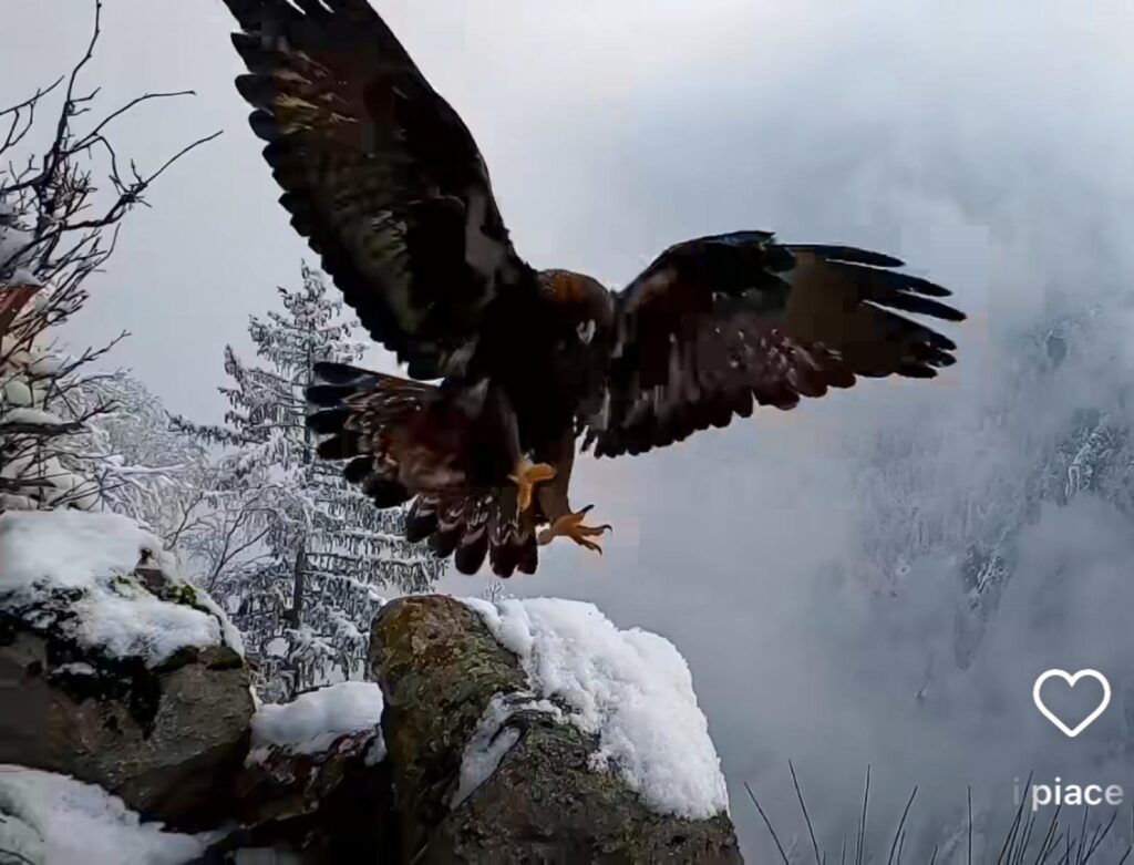 Un reel di pochi secondi con la “nostra” aquila reale, filmata in alta Valle Brembana, che si posa su uno sperone di roccia e poi riparte. Immagini spettacolari, uniche, girate due anni fa da Baldovino Midali, 64 anni, fotografo e videomaker naturalista di Branzi, vincitore già di diversi premi.