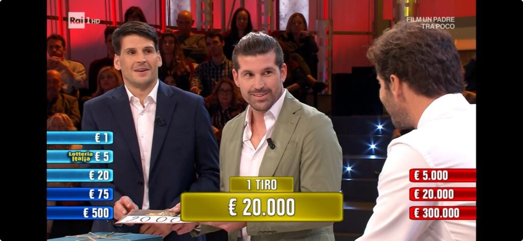 Tra una battuta e l’altra di De Martino su Roncobello (“420 abitanti? Stasera a guardarti saranno in 418”) si arriva al finale: Fausto ed Enrico accettano i 20mila euro proposti dal notaio. Nei due pacchi rimasti c’erano 5 euro in quello di Enrico… ma anche 300mila euro in quello di Fausto.