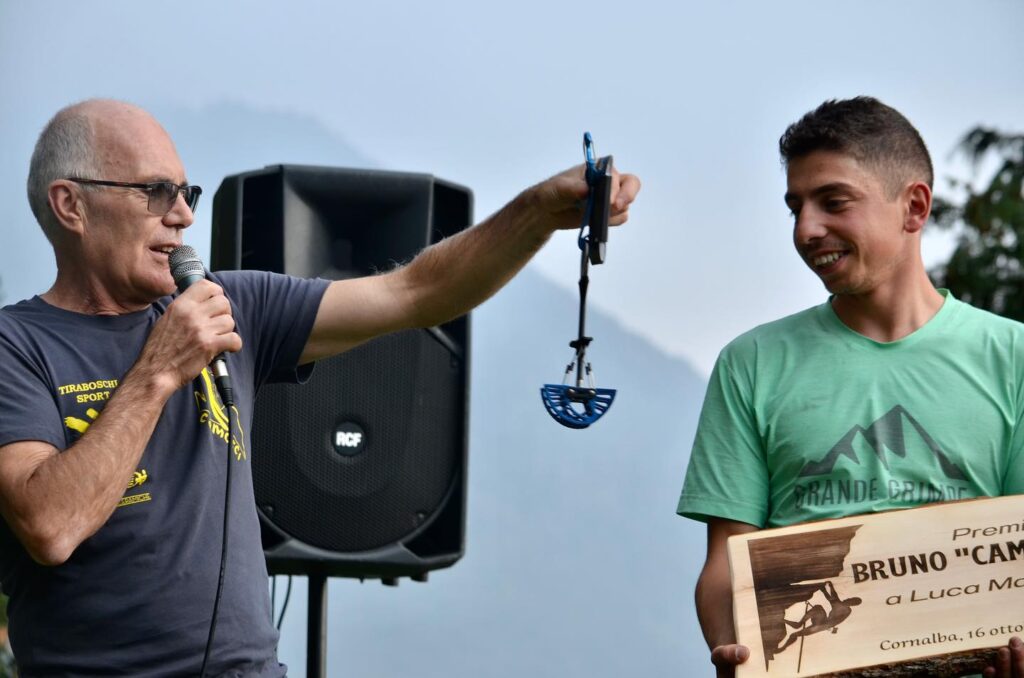 “Quando ancora c’era Bruno – ricorda Gianandrea Tiraboschi – l’appuntamento alla Corna Bianca era una gara vera e propria. Con la scomparsa del Camòs è stata trasformata in un raduno in amicizia, durante il quale consegniamo anche un premio a ricordo proprio di Camòs. Negli anni è stato assegnato, tra gli altri, a Simone Moro, Mario Curnis, Yuri Parimbelli e Mauri Tasca. Ora a Luca Masarati che negli ultimi anni ha dimostrato un grande talento”. A lui, oltre alla targa in legno, anche un “friend”, attrezzo di sicurezza per l’arrampicata, ma in questo caso anche come segno di amicizia del raduno.